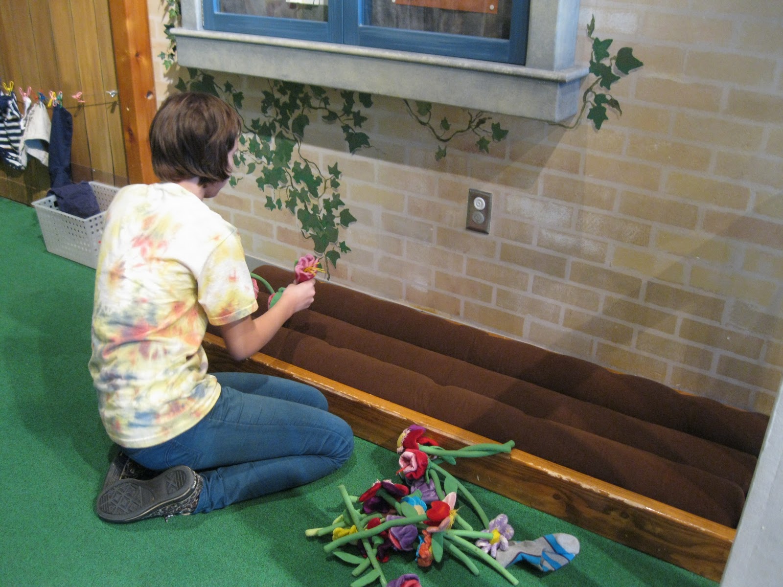 This is in the story book room. She's painting.