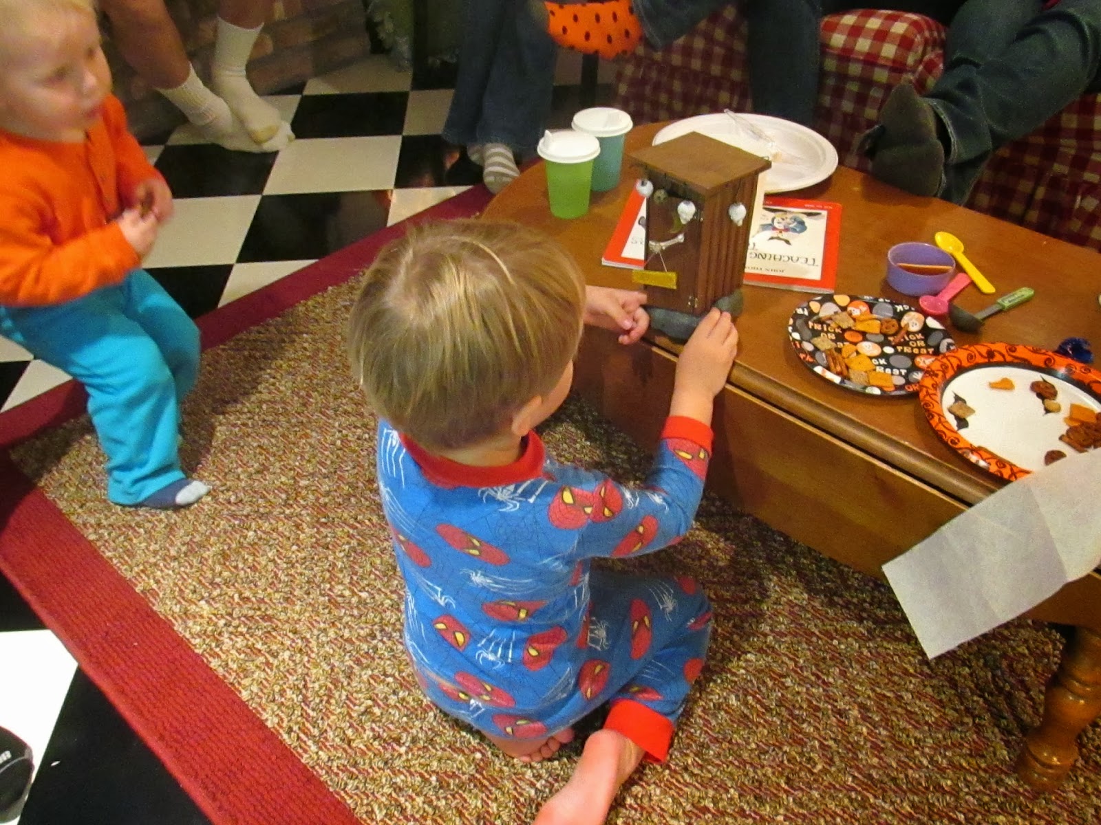 And his little brother kept backing up further and further away from the potty skeleton.