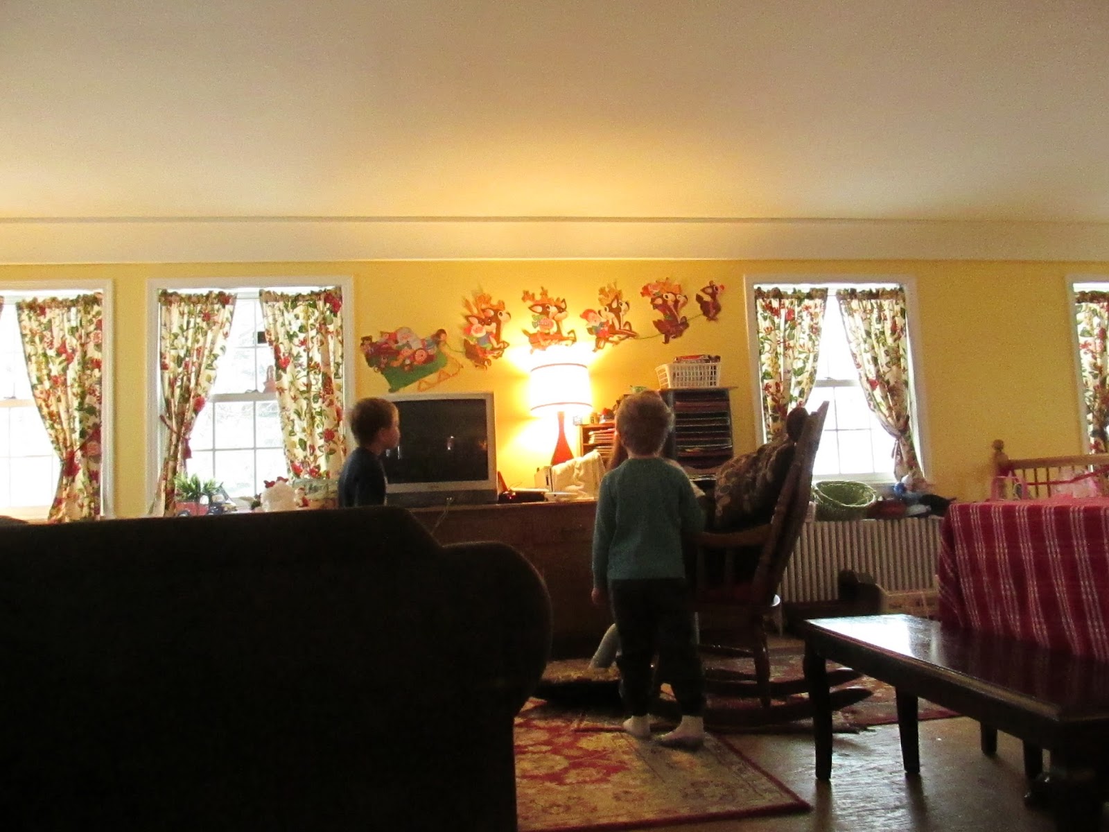 There was a camp out with her in the family room last night, so the puppy wouldn't be scared. Kari said part of the night she slept inside the kennel, and part of it she slept with her on the floor. And she jumped on Kari's face one time when she was sleeping and scratched her nose. That's okay.