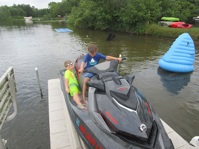 Here rainwater had filled the sides of the jet ski and they couldn't resist. At one point they were dunking their heads in it, saying how cold it was.