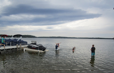And here's a kid chatting with his two grandpas, Jay on the left, and Alicia's dad on the right. We are so glad they bought a cabin up at the lake with us. Last night they were the only others up at the lake with us when the storms hit. They were out fishing and had to run for it. We were getting ready to go out to eat and had to postpone those plans.