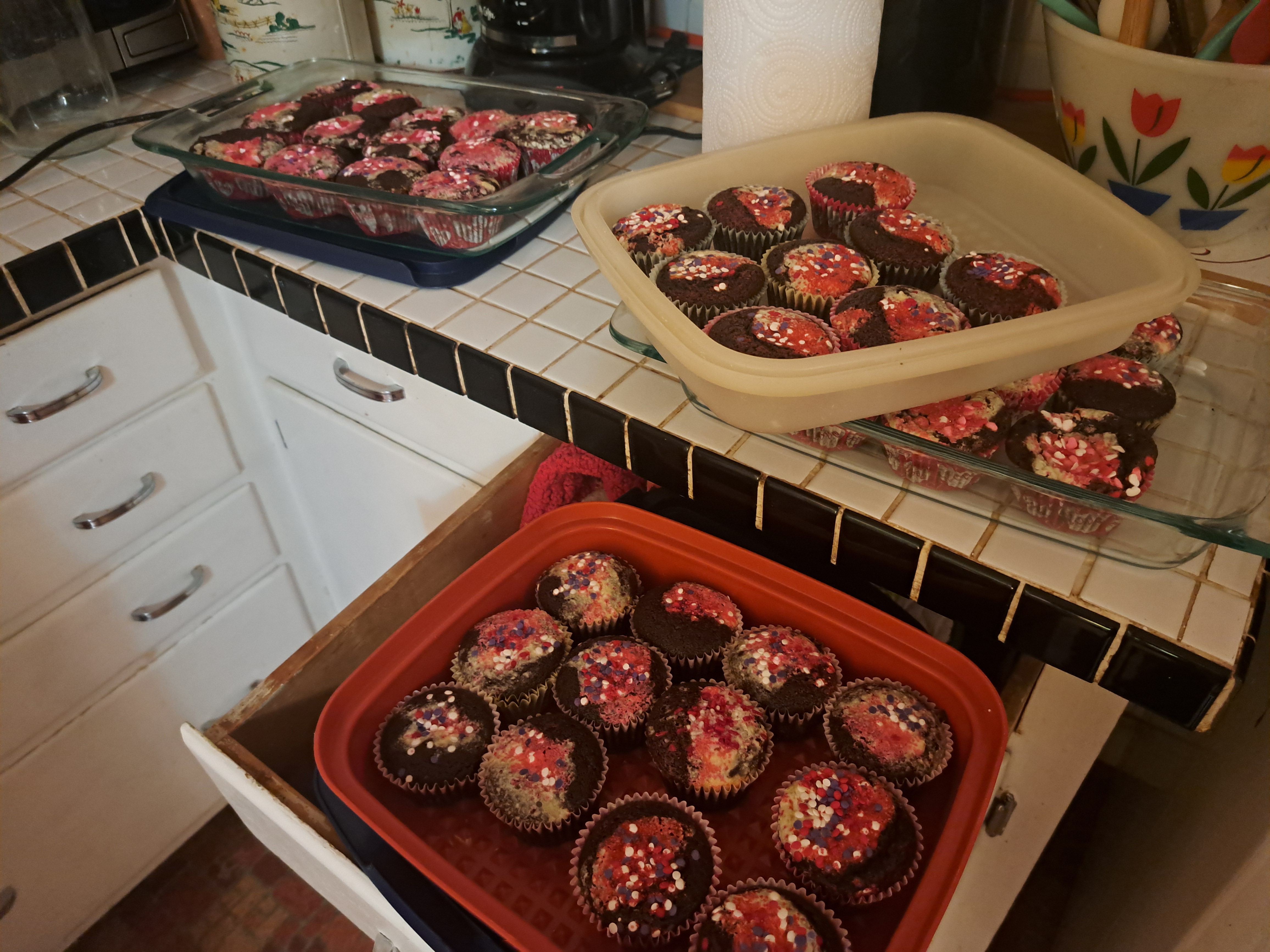 Tonight cupcakes were baked for our anniversary party tomorrow.